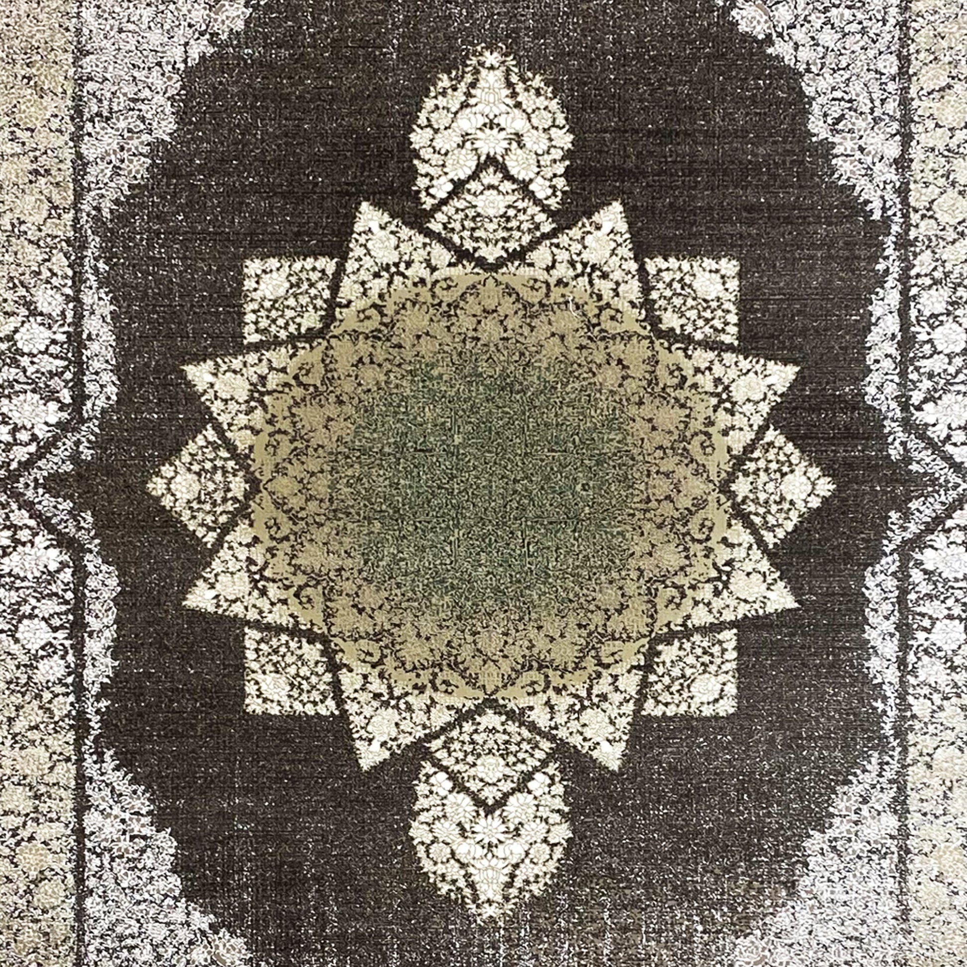 Verleihen Sie Ihrem Zuhause einen einzigartigen Akzent mit diesem modernen Klassiker-Teppich. Das markante geometrische Stern-Muster im Zentrum bildet einen eindrucksvollen Blickfang, umgeben von einer traditionell verzierten Bordüre. Gefertigt aus 100% hitzebehandeltem Acryl, ist dieser strapazierfähige und sehr weiche Teppich ideal für stark frequentierte Bereiche. Mit seiner Größe von 170x240cm und der eleganten cremefarbenen Optik ist er ein perfektes Statement-Stück, das traditionellen Charme mit modernem Design verbindet.