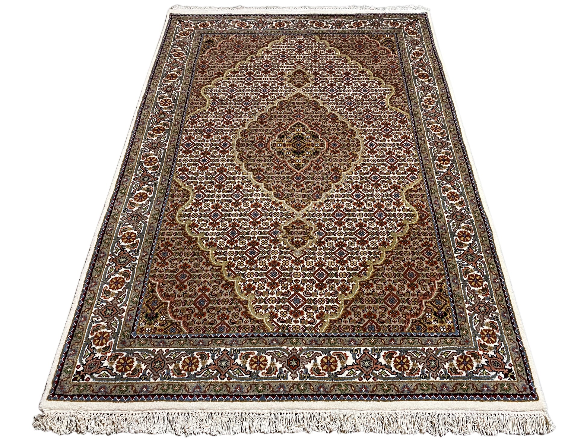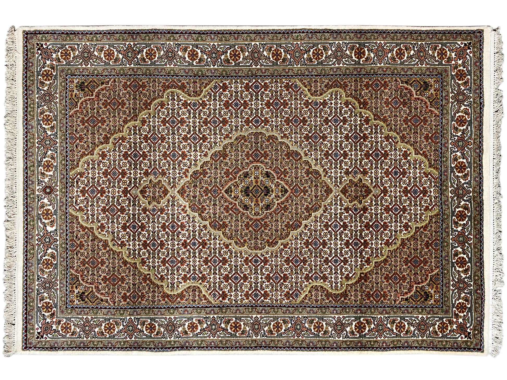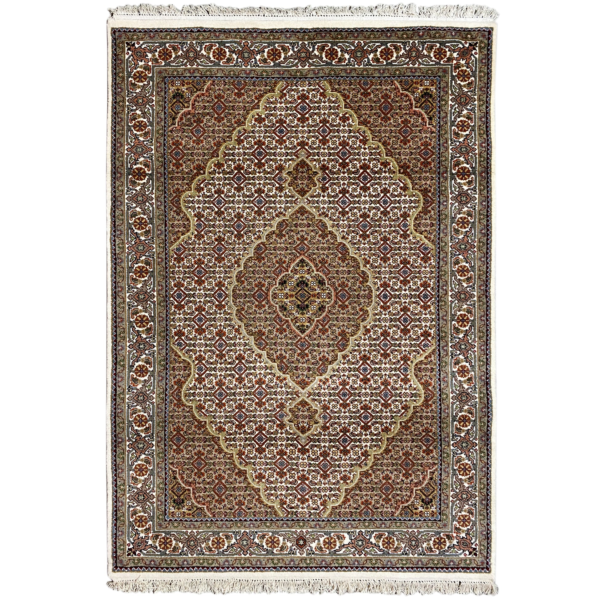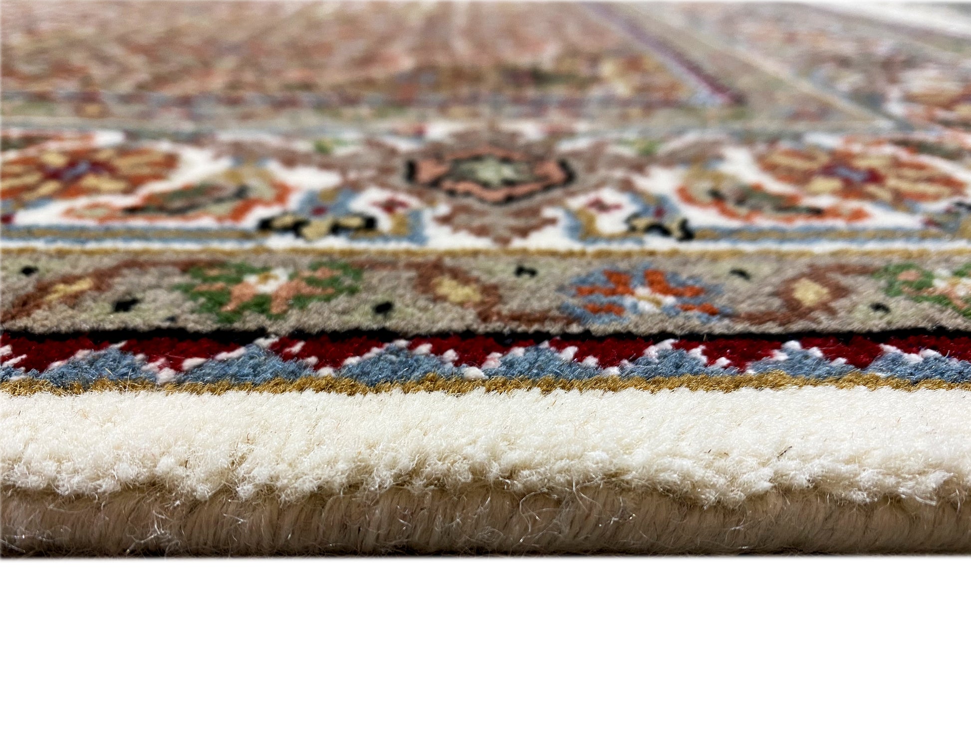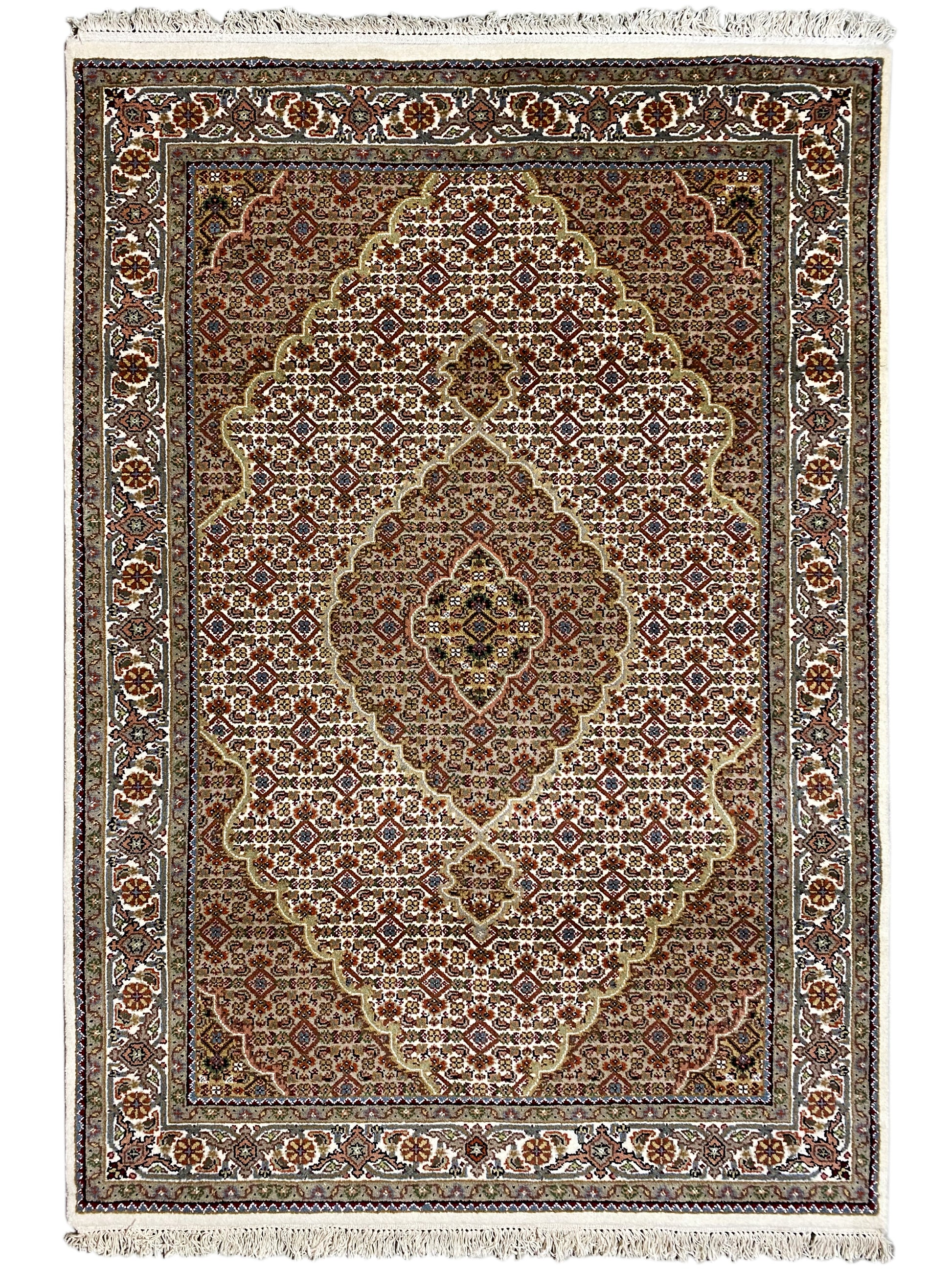 Ursprünglich kommt der Tabriz Teppiche aus dem Nord-western Persiens. Mittlerweile werden diese Teppiche jedoch auch mit derselben Qualität Standards in Indien handgeknüpft. Unsere Tabriz sind hochwertige, edle Teppiche, die aus feiner Wolle und Viskose geknüpft werden. Die Teppiche haben kräftige, klare und tiefe Farben und sind, aufgrund ihrer guten Verarbeitung, sehr strapazierfähig.
