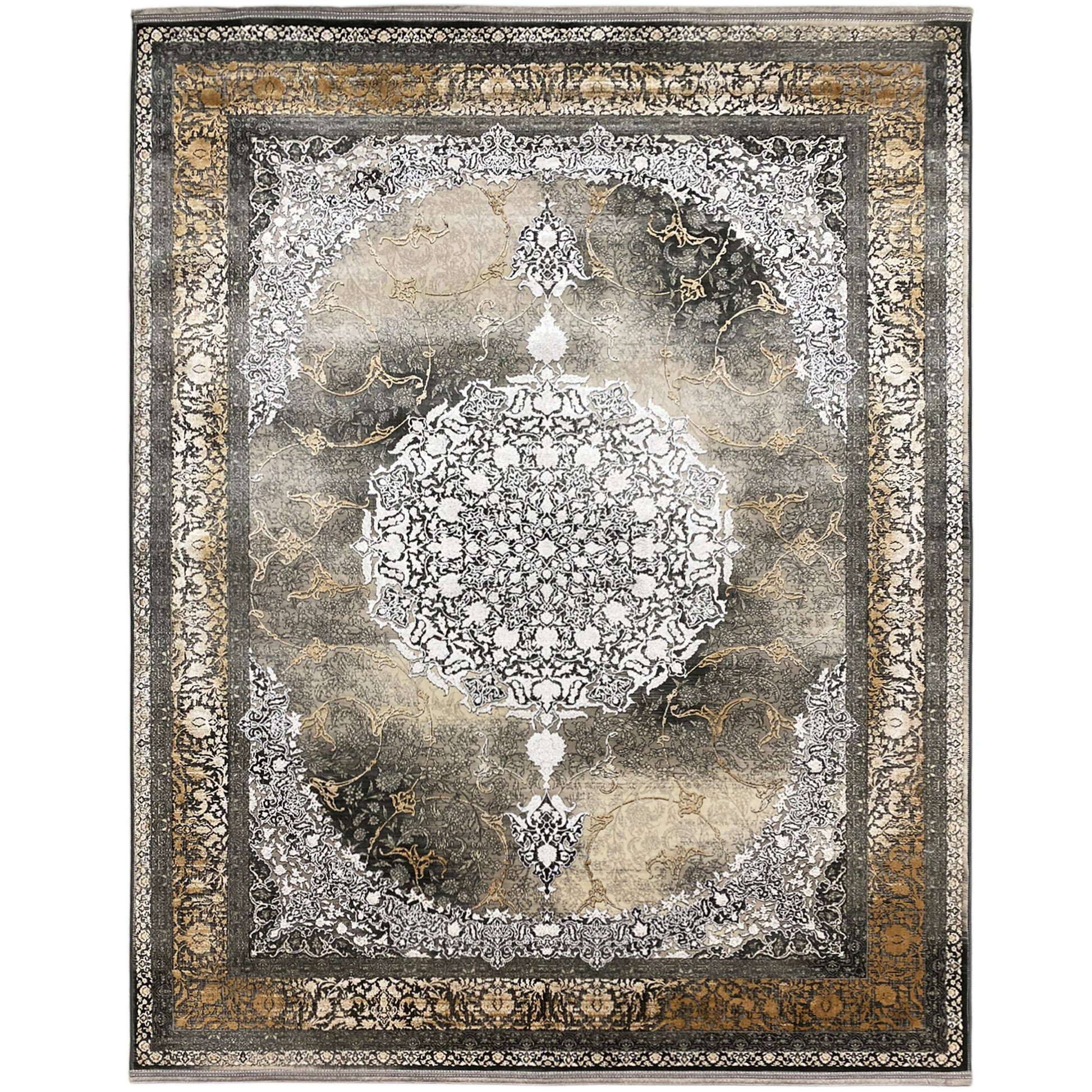 Verleihen Sie Ihrem Zuhause einen Hauch von Vintage-Eleganz mit diesem wunderschönen modernen Klassiker-Teppich. Sein kunstvolles zentrales Medaillon hebt sich von einem rauchbraunen Hintergrund mit einem subtilen Farbverlauf und einem Used-Look ab, was ihm eine zeitlose Ausstrahlung verleiht. Gefertigt aus 100% hitzebehandeltem Acryl, ist dieser weiche und strapazierfähige Teppich perfekt für stark frequentierte Bereiche und verbindet luxuriösen Stil mit moderner Widerstandsfähigkeit. Die großzügige Größe von 170x240cm ist ideal, um Ihrem Wohn- oder Schlafzimmer einen raffinierten Blickfang zu verleihen.